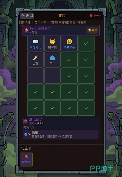 在炫酷的背包环境当中,也给大家提供了很多辅助的道具卡牌。比如有匕首或者是修炼笔记,甚至还有贪婪之手等等,看似这些装备对自己并不会造成任何的影响,但实际上每种装备巧妙搭配之后,就可以在热血的战斗当中轻松生效,其次还可全面提升自身的战斗实力,而大家还要将更多的精力放在升级以及强化的方面,能够随机造成10到40点的伤害值。
