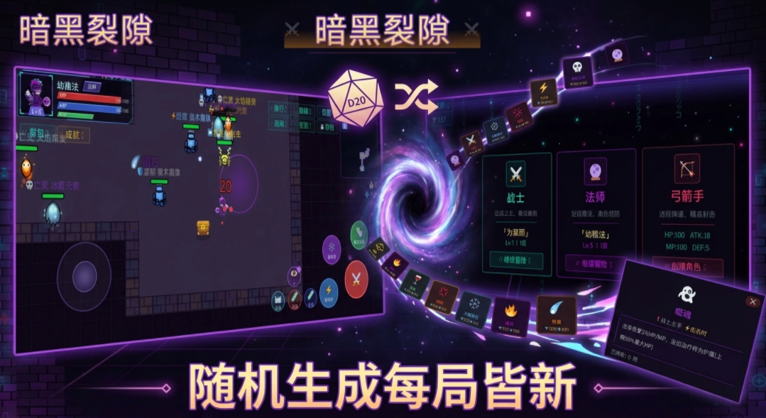 暗黑裂缝在掉落的装备的时候都是随机的,也就是说每一次拾到的装备属性可能都不一样,玩家对于装备也可以进行组合,从而让职业的战斗风格得到更好的成长。在战斗的期间,每一次获得胜利都会有着不一样的成果。在探索的期间要不断的强化自己的角色,就连神秘的迷宫玩法也有着一定的难度和考验,所以要做好装备和资源的整合。