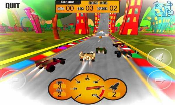 在去卡丁车赛跑三个等级,新手、 半职业或 Pro 电脑车。游戏显示了几圈,倍,速度,都有...展开